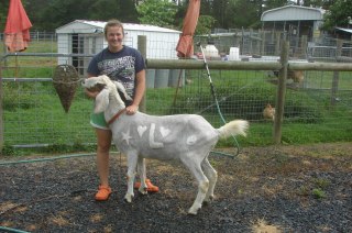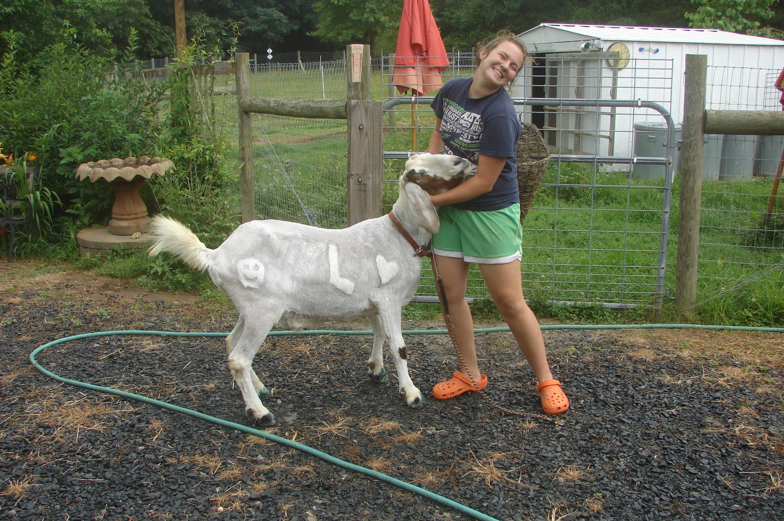 This picture was taken last summer (2009). Jordan (my goat-helper) went bonkers on us after sheering 25 goats. By the time she got to Lester, she HAD to express her creativity. Lester deserved it, don’t feel sorry for him. Mr. Wonderful is our beloved pain-in-the-bottom. More about him later. His antics could fill volumes. Every farm needs a Lester; he’s ours.