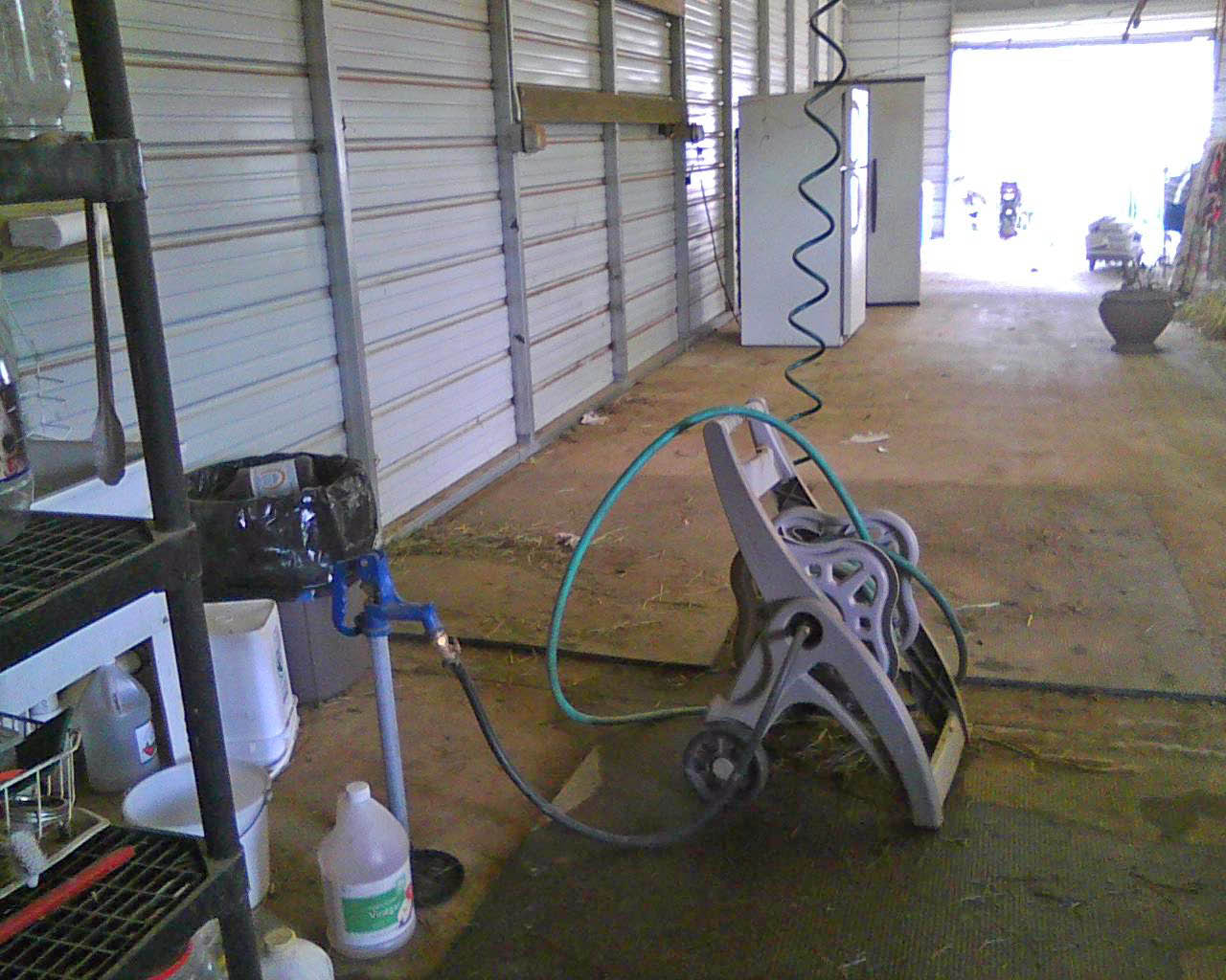 Yesterday, Don and I emptied the human side of the barn. With everything OUT of the barn we began power washing the walls and the most of the equipment. Today we’ll be finishing this task, have everything power cleaned and back in place.