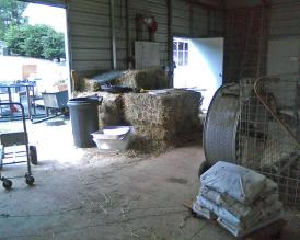 Yesterday, Don and I emptied the human side of the barn. With everything OUT of the barn we began power washing the walls and the most of the equipment. Today we’ll be finishing this task, have everything power cleaned and back in place.